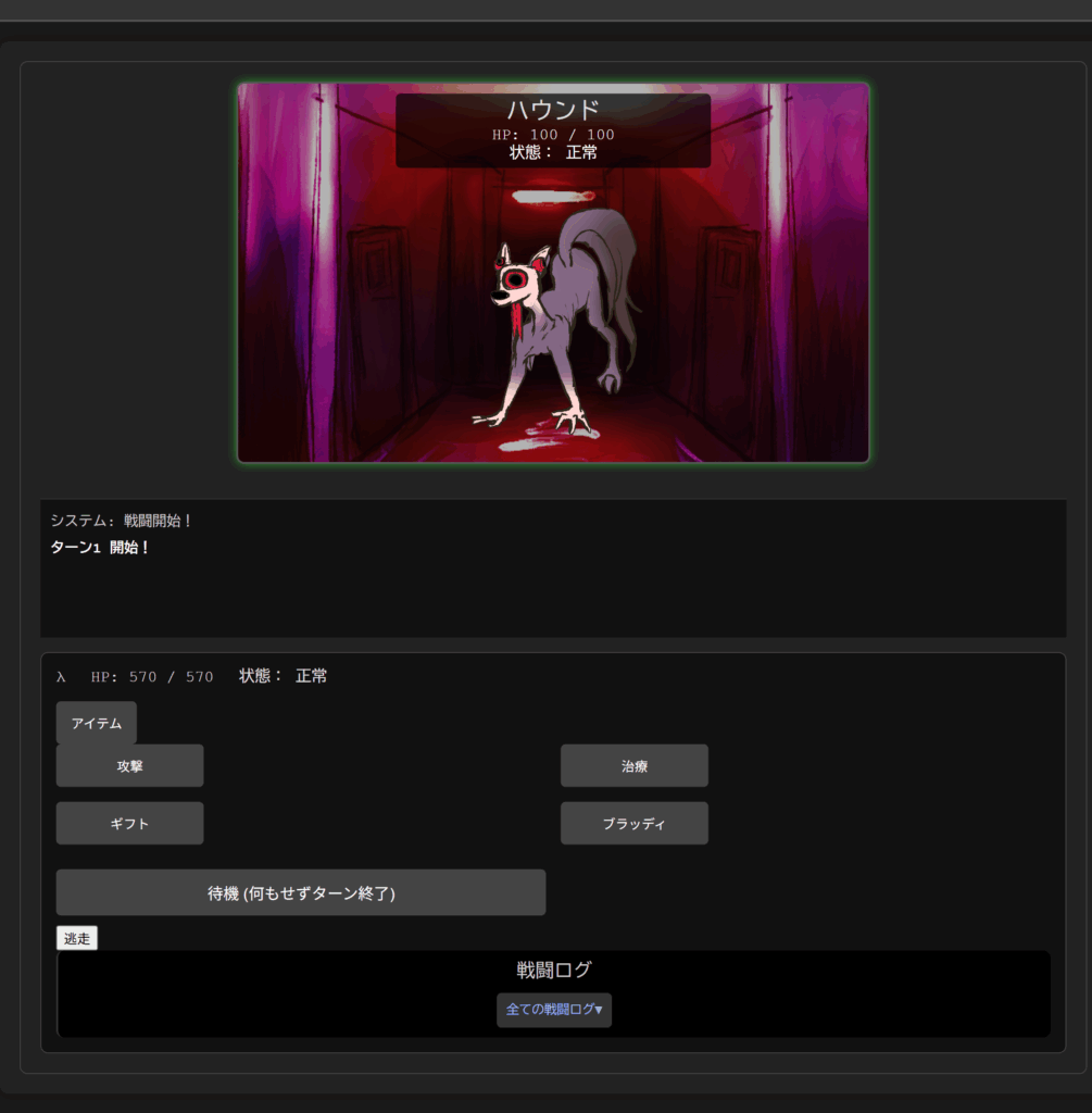 今作『DREAM:Redacted Room』は主に戦闘システムのテストが目的。AEolussさんが過去に運営していたような「デスゲーム」ではなく、システム的なロストも無く、人数制限も無い。