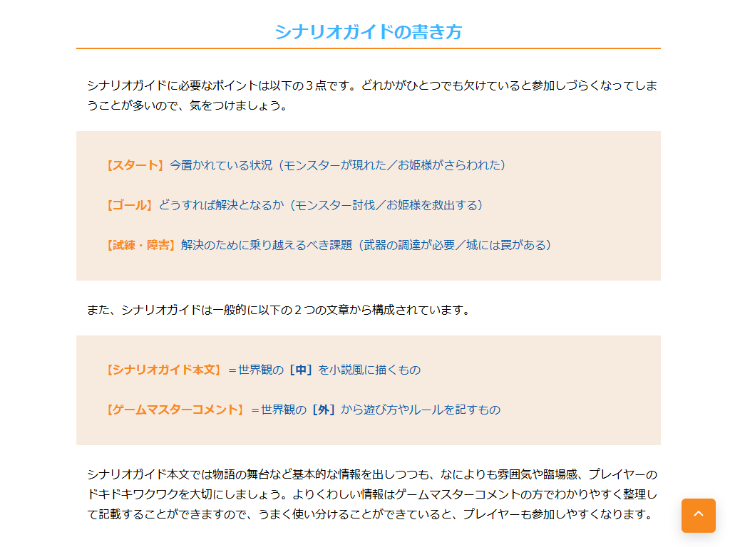 ゲームマスター(ライター)向けには、PBWの仕組みや用語、シナリオに求められる内容、リアクション(リプレイ)に期待される内容などが平易に書かれている。実践編としてPBW『BLACK DANDELION』の世界観を用いた[トライアルシナリオ]が公開されており、制作したリアクションはXやpixivなどに公開することも可能で、ハッシュタグ「#PBWトライアル」をつけることが推奨されている。